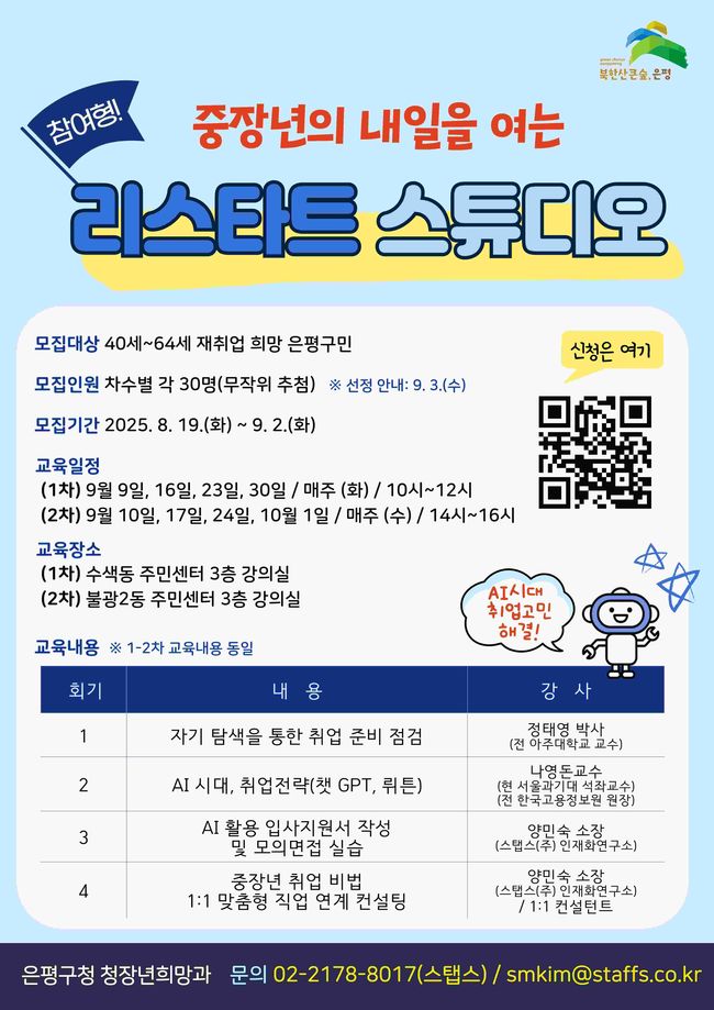 은평구, AI 기반 중장년 취업 컨설팅 `리스타트 스튜디오` 운영.