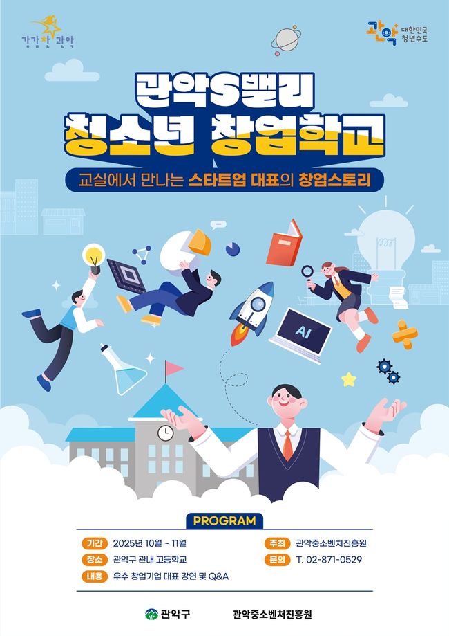 특히 관악S밸리 입주기업과 지역 내 우수 창업기업 대표들이 직접 참여해 창업 경험과 도전 사례를 공유하는 자리가 마련된다. 청소년 눈높이에 맞춘 생생한 사례 중심 강의가 진행돼, 학생들은 창업의 현실과 도전정신을 직접 느낄 수 있을 것으로 기대된다.