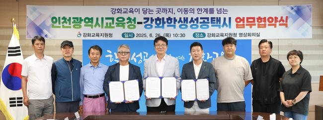 인천광역시교육청(교육감 도성훈)은 26일, 강화교육지원청이 지역 내 택시조합 2곳과 업무협약(MOU)을 체결하고, `강화학생성공택시` 시범 운영에 본격 돌입했다고 밝혔다.
