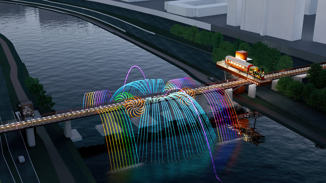 경춘철교 전망대 야간경관 조감도.서울 노원구(구청장 오승록)는 10일 과거 경춘선 열차가 지나던 경춘철교 상부에 길이 27m, 폭 6.3m 규모의 ‘교량분수 전망대’를 설치한다고 밝혔다.