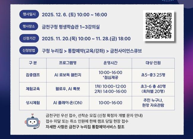 금천구, `AI 로봇 캠프` 참여자 모집